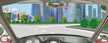 446、驾驶机动车驶出这个环岛路口怎样使用灯光?