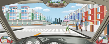 376、驶近没有人行横道的交叉路口时,发现有人横穿道路,应怎样做?