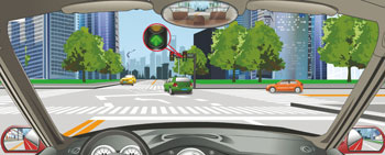 356、驾驶机动车直行通过前方路口怎样行驶?