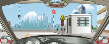 301、驾驶机动车怎样通过这个铁路道口?