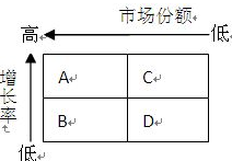 1764.甲公司有rnA、rnB、rnC、D四类业务,根据波士顿矩阵法(BGG矩阵法)分析分别落入下图的四个象限,四类业务中适合采用发展型战略的是: