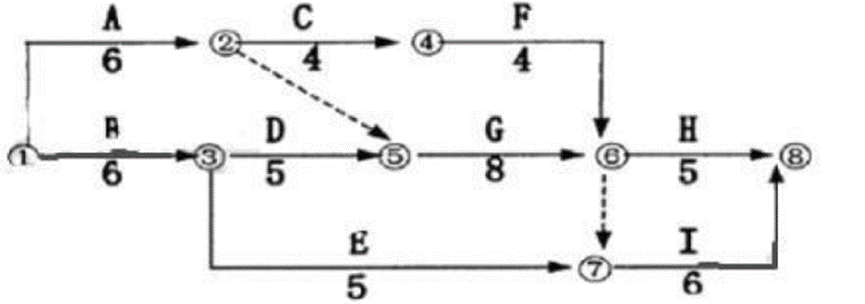 210.【背景资料】某建设单位(甲方)与某施工单位(乙方)订立了某工程项目的施工合同。合同规定:采用单价合同,每一分项工程的工程量增减超过10%时,需调整工程单价。合同工期为25天,工期每提前1天奖励3000元,每拖后1天罚款5000元。乙方在开工前及时提交了施工网络进度计划如图所示,并得到甲方代表的批准。