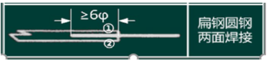 2.接地装置的搭接要求(1)扁钢与扁钢搭接不应小于扁钢宽度的2倍,且应至少三面施焊;(2)圆钢与角钢搭接不应小于圆钢直径的6倍,且应双面施焊;(3)圆钢与扁钢搭接不应小于圆钢直径的6倍,且应双面施焊;(4)扁钢与钢管,扁钢与角钢焊接,应紧贴角钢外侧两面,或紧贴3/4钢管表面,上下两侧施焊。(5)当接地极为铜材和钢材组成,且铜与铜或铜与钢材连接采用热剂焊时,接头应无贯穿性的气孔且表面平滑。