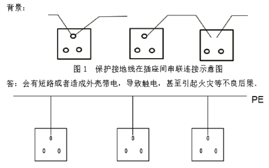 4.插座接线要求(1)单相两孔插座,面对插座板,右孔(或上孔)与相线(L)连接,左孔(或下孔)与中性线(N)连接;(2)单相三孔插座,面对插座板,右孔与相线(L)连接,左孔与中性线(N)连接,上孔与保护接地线(PE)连接。(3)三相四孔及三相五孔插座的保护接地线(PE)应接在上孔;插座的保护接地线端子不得与中性线端子连接;同一场所的三相插座,其接线的相序应一致。(4)保护接地线(PE)在插座之间不得串联连接。(5)相线(L)与中性线(N)不应利用插座本体的接线端子转接供电。相关题目