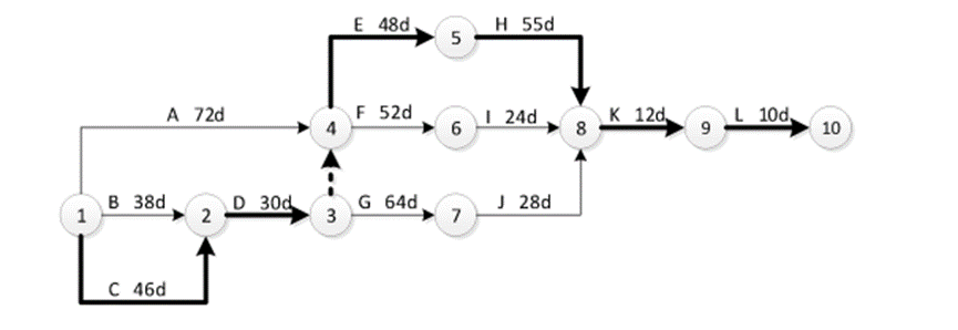 正确答案:答案:1.关键工作为:钢结构制作C,钢结构吊装、焊接D,工艺设备安装E,工艺设备调整H,单机试运行K,联动及负荷试运行L。画出网络图如下: