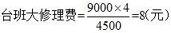 本题中,耐用总台班数是4500台班,大修理间隔为900台班,则大修理次数共4次。n