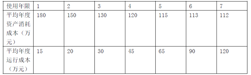 1797.某设备在不同使用年限的平均年度资产消耗成本和评均年度运行成本如下表所示,则该设备在静态模式下的经济寿命为()年。1845