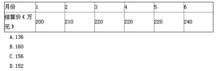 1182.某工程项目预付款120万元,合同约定:每月进度款按结算价的80%支付;每月支付安全文明施工费20万元;预付款从开工的第4个月起分3个月等额扣回,开工后前6个月结算价如下表,则第5个月应支付的款项为()万元。(2015真题)