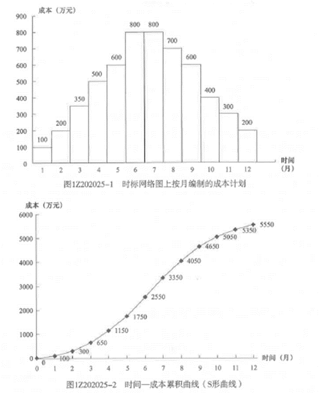 解析:2020/2019教材P81通过对施工成本目标按时间进行分解,在网络计划基础上,可获得项目进度计划的横道图。并在此基础上编制成本计划。其表示方式有两种:一种是在时标网络图上按月编制的成本计划直方图,如图1Z202025-1所示;另一种是用时间一成本累积曲线(S形曲线)表示,如图1Z202025-2所示。