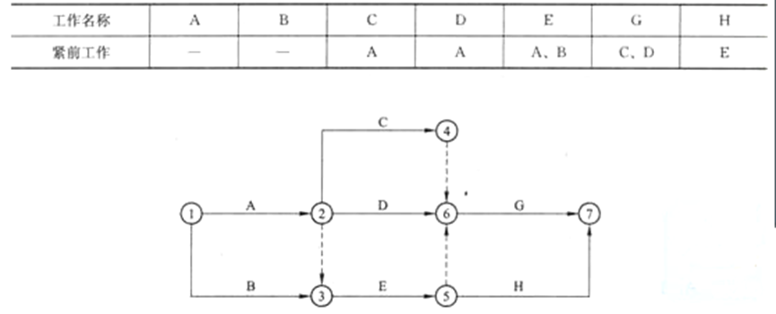 3374.根据下表给定的逻辑关系和绘图规则,检查下列给定的双代号网络图,寻找并发现绘图错误。下列表述正确的是()。