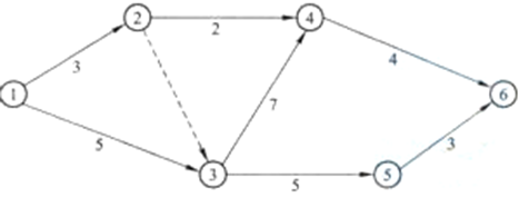 3335.某分部工程双代号网络计划如下图所示,有七项工作组成。其中工作3—5最迟开始时间为()天。