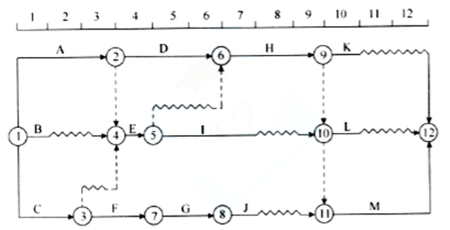 3330.某分项工程双代号时标网络计划如下图所示,其中工作C和I的最迟完成时间分别为第()天。