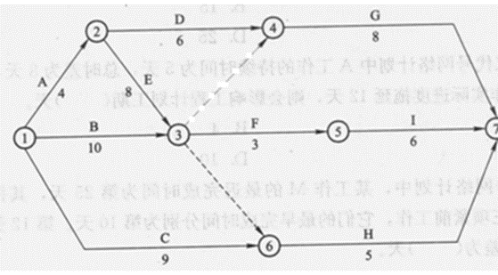 3307.某工程双代号网络图如下图所示,箭头下方的数字表示工作的持续时间(单位:天),则工作E的总时差和自由时差分别为()。