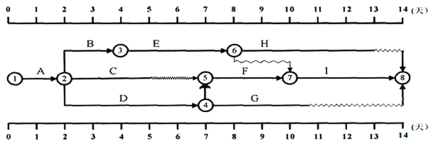 3288.某工程双代号时标网络计划如下图所示(单位:周),其中工作E的总时差和自由时差()周