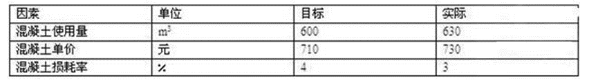 3122.某商品混凝土目标成本为443040元,实际成本为473697元,具体资料见下表,则混凝土使用量变化导致的成本增加为()元。
