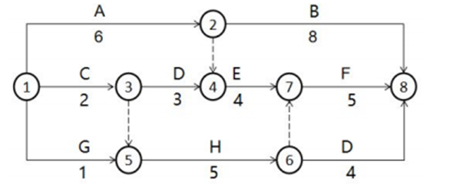 2247.某工程的进度计划如下图(单位/天)所示,在实际进度中,因业主提供的设计图存在偏差导致C工作延误5天,则下列选项中,错误的是()。