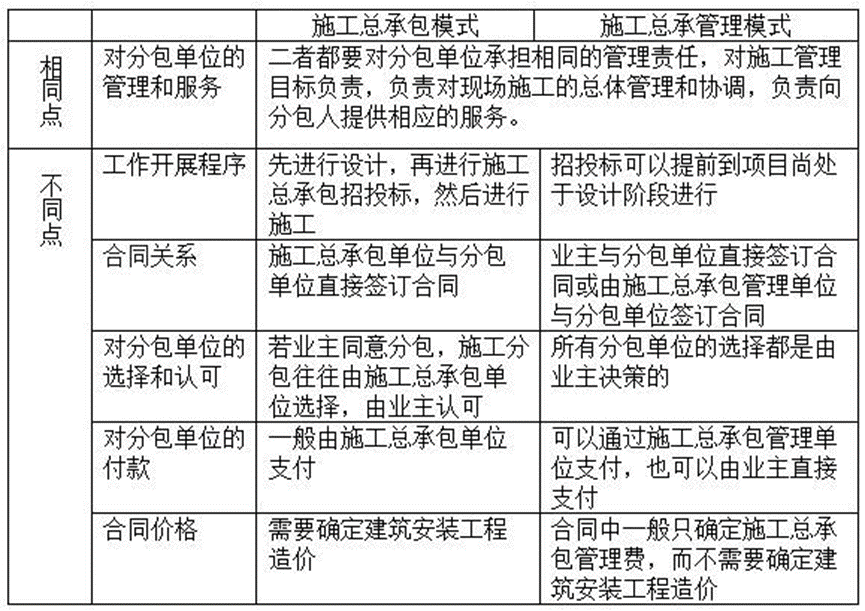 施工总承包与管理要点对比