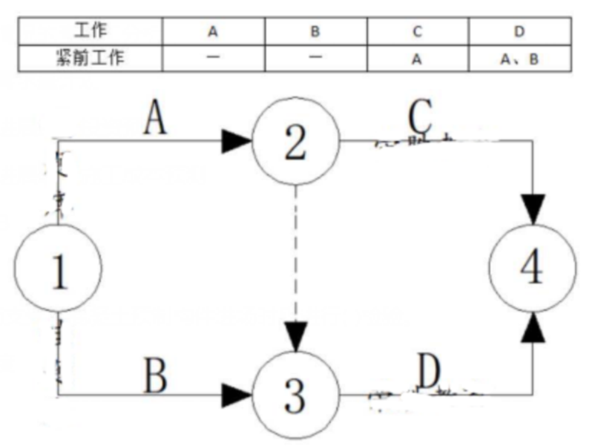 1802.(2020年真题)各工作间逻辑关系表及相应双代号网图如下图。图中虛箭线的作用是()。