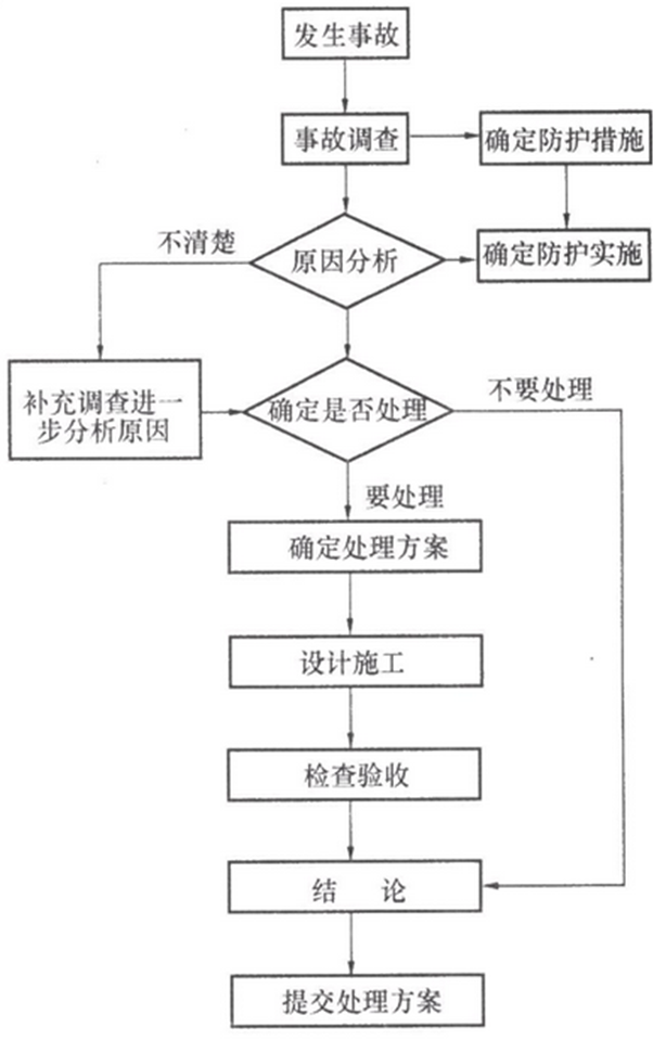 解析:本题主要考查的是施工质量事故的处理程序和施工质量事故处理的基本方法。nn施工质量事故处理的一般程序如图所示。