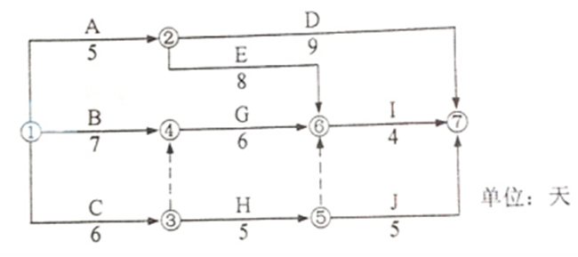 1786.(2019年真题)某工程网络计划图如下,工作D的最迟开始时间是第()天。