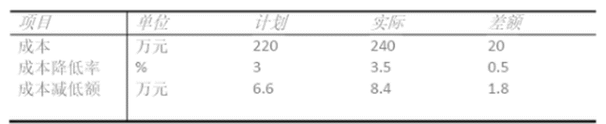 1710.某项目施工成本数据如下表,根据差额计算法,成本降低率提高对成本降低额的影响程度为()万元。(2015)