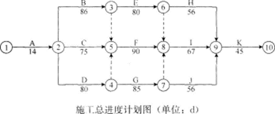 157.背景资料:某工程项目合同工期为18个月,施工合同签订以后,施工单位编制了一份初始进度计划网络图(单位:月)如下: