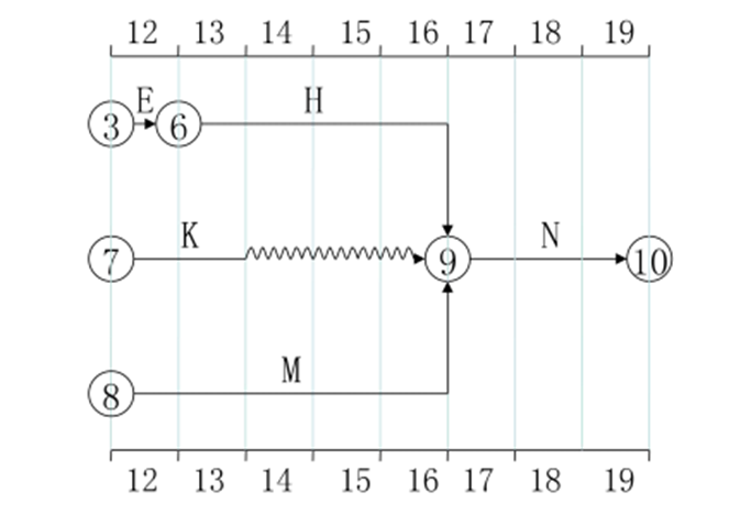 正确答案:答案:1.(1)施工进度计划实施监测方法还有:横道图比较法;图洛计划法;S形曲线法;香蕉型曲线比较法。(2)工作E实际进度滞后1个月,其为关键工作,使总工期延长1个月;工作K实际进度与计划进度一致;工作M实际进度滞后三个月,其有2个月的总时差,使总工期延长1个月;所以该项目总工期延长一个月。2.已完工作预算费用=112万元;计划工作预算费用=129万元。进度偏差=已完工作预算费用-计划工作预算费用=112-129=-17万元<0。所以进度滞后17万元。3.12月初至工程结束的网络图如下: