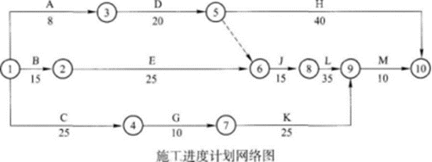 92.某矿井选矿厂工程在工程开工前,业主与公司签订了施工合同,并就施工进度安排取得了一致意见(进度计划如下图所示),G和J的施工全过程工作共同用一台塔吊,其中由于业主图纸送达延误致使C工作推迟10d。?