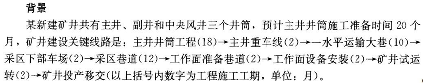问题1.该矿井建设总工期可以采用什么方法进行推算?2.该矿并建井工期和总工期分别是多少?3.若副井比主井提前结束到底,请预测一下该矿井建井工期。