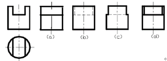 11044.根据主、俯视图,判断主视图的剖视图( )是正确的。