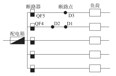 14.一幢五层综合楼(一层为商场,二层为办公用房,三、四、五层为通廊式住宅)于某日 10 时 35 分发生火灾,造成 9 人死亡,10 人重伤,直接财产损失 54 万元。火灾扑灭后,经现场初步勘验发现:该楼四、五层烧毁严重,三层轻微烧毁。细项勘验发现:四层 2 号住宅内可燃物全部烧毁,其余住宅不同程度烧损。对应的上部五层 2 号住宅被烧严重,下部第三层的 2 号住宅木龙骨吊顶烧损。专项勘验发现:该综合楼配电箱中控制四、五层支路的 40A 低压断路器(QF4、QF5)断开,其他楼层断路器仍处于闭合状态。四层 2 号住宅厨房内固定电源插座上连接一具电炒锅,引下线上有两处短路熔痕(标号为 D1、D2);五层 2 号住宅内明敷于墙面的空调机电源线上有一处短路熔痕(标号为 D3),具体位置见示意图: