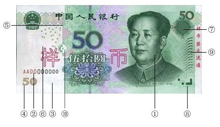 37450元,下列选项中对图片上标号③防伪特征名称描述正确的是()。