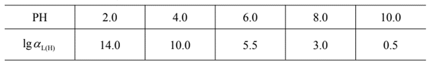 <121>以1.0×l0-3mol/L的络合剂Y滴定1.0×l0-3mol/L的金属离子Mn2+,根据下表中pH与1ga的数值,则溶液pH在8~10时,采用金属指示剂可以准确滴定Mn2+(设配合物MY的稳定常数KMY=l014)。