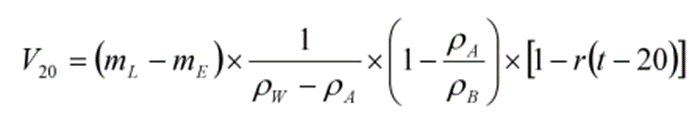 <19>玻璃容量仪器的衡量法校正的计算公式是