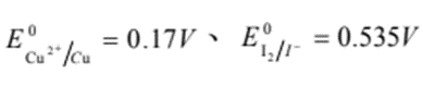 );但若生成CuI沉淀后情况会有所变化。通过计算判定(均在标准状态下)2Cu2++4I→2CuI↓+I2↓反应的方向(KspCuI=1.1×10-12)()。
