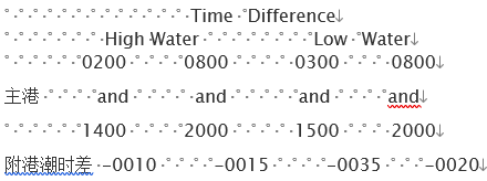 则对应该主港高潮时的附港潮时差为: