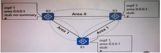 259、如图所示, 路由器所有的接口开启 OSPF, R1、R2、R3 的配置如图所示, 则() 会生成 Link State ID 为0.0.0.0 的 Type3 LSA。(请填写设备名称,例如 RI)