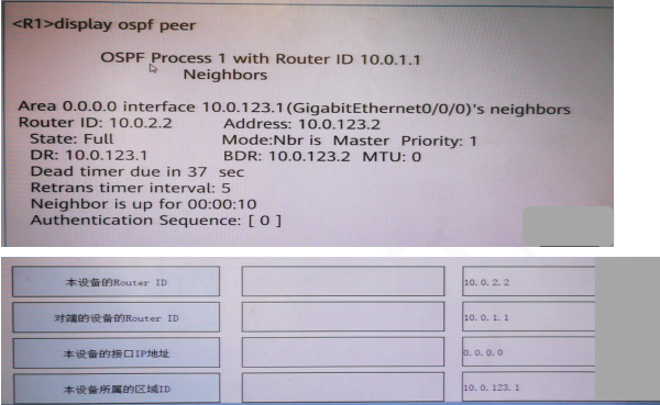 255、以下是某台路由器的输出信息,请将左侧信息和右侧信息进行匹配。
