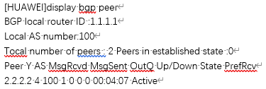 上面是一台路由器的输出信息,关于路由器与邻居2.2.2.2的邻居关系处于Active状态的分析中, 最有可能是由于下面哪种原因导致的?