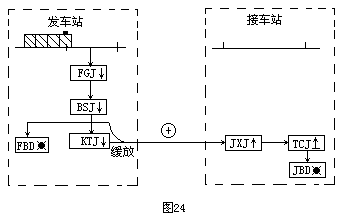31.试画出64D型继电半自动闭塞中列车出发进入发车站轨道电路区段时,发车站和接车站电路的动作顺序。
