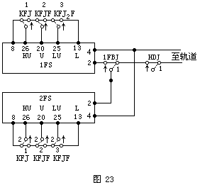 采取的措施是:(1)当信号开放时,使ZXJ先于LXJ吸起,ZXJ吸起后用接点切断第二个绿灯的点灯电路,然后用前接点接通第一个绿灯的点灯电路待LXJ吸起后,使第一个绿灯点亮,信号机则显示一个绿灯。为实现ZXJ先吸起,LXJ后吸起,在ZXJ的励磁电路中要经过LXJF的后接点。而LXJ的励磁电路里则要经过与ZXJ串联励磁的XFJ的前接点。(5分)