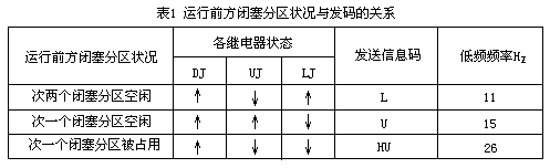 运行前方闭塞分区状态与发码关系表:(请复印《新型移频自动闭寒》表2-17)