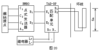 根据点式信息发送设备的安装位置,使用相应的点式发送器。图中编码接点为进站或出站信号开放继电器接点和方向继电器接点,经编码接点可接通发送器EMBOK中监控、转线、开、断等频率信号,经放大,通过电缆进入现场的匹配单元TAD.BP,提供环线上2A的点式信号,供机车信号接收。点式信息发送设备工作正常时,检查继电器N.S1.24.8.0.4可靠工作。(2分)