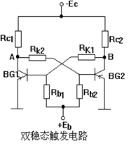 正确答案:答:在工业生产的自动化中,常常需要这样一种电子开关:输入一个信号,开关接通,再输入一个信号,开关断开,即输入二个信号,完成一个开关动作。双稳态触发器是实现这种开关动作的电路。见图,它是由两个反相器相互耦合而构成的。由于反相器的输入与输出信号是反相的,因此,双稳态电路有两个稳定状态:晶体管BG1截止,BG2导通,这是一个稳定状态;反之BG1导通,BG2便截止,这是另一个稳定状态,故称双稳态电路。当外界条件不变时,它始终维持原来所处的稳定状态,在外加信号触发下,双稳态电路便从一个稳定状态迅速地转换到另一个稳定状态。