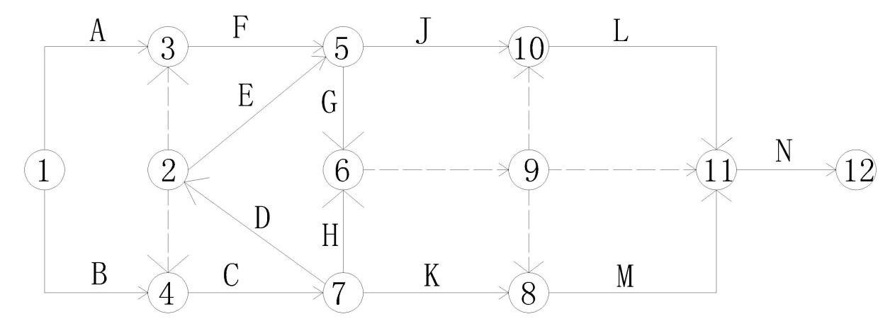 14.项目经理王经理让刚毕业的小李编制本工程的网络计划,下图是是小李编写的初稿,请你指出该图存在的错误是()