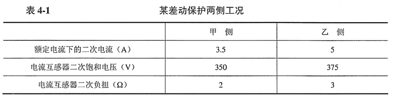 8.某差动保护两侧电流互感器型号、变比都不同,两侧的工况见表4—1。