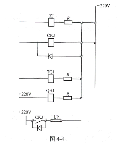 38.保护直流二次回路实际接线如图4.4所示,试分析回路中存在的问题,并加以改正。
