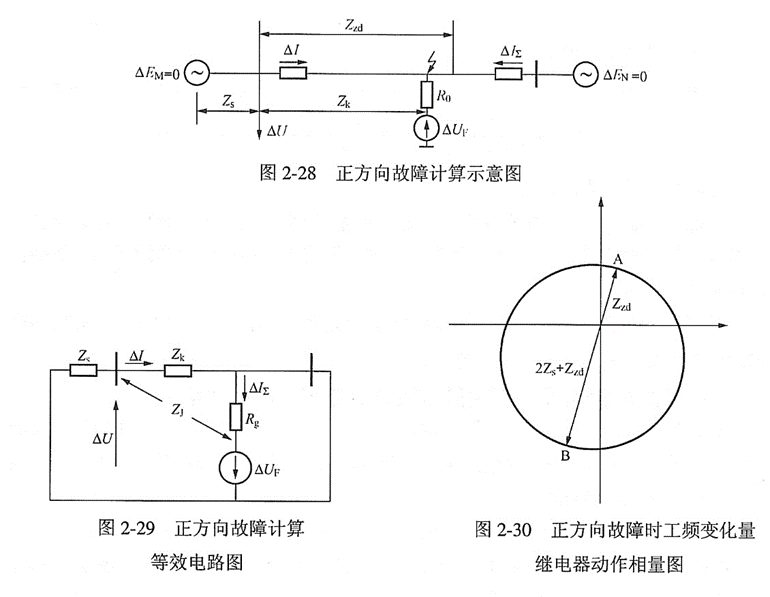 正确答案:答:工频变化量阻抗继电器在正向短路故障时的计算示意图及等效电路图如图2.28和图2.29所示。(1)工频变化量阻抗继电器的动作方程