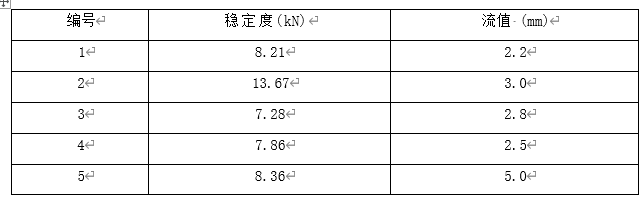2、根据《公路工程沥青及沥青混合料试验规程》JTG E20-2011,沥青混合料马歇尔稳定度试验时, 一组 5 个试件, 测得试验数据如下表, 该组试件马歇尔试件的稳定度为( ) 。(注: 试验数目为5 时, 其 k 值取 1.67)