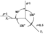 79.用如图所示的轴间角及轴向变形系数所绘轴测图为( )。